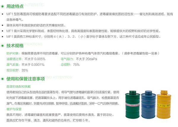 雙球MF1-3#&4#自吸過(guò)濾式防毒面具面罩
