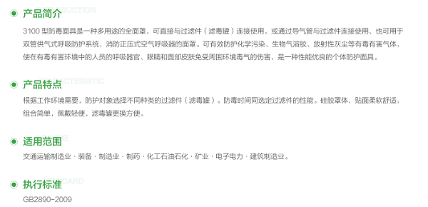 雙球SM3100自吸過濾式防毒面具全面罩